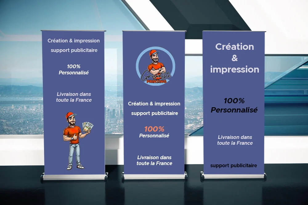 Vous pouvez être amenés à changer le visuel de leur banner extérieur. Mais pas de souci, c’est très facile, tout comme le montage du banner extérieur. Comme pour de nombreux produits de la gamme display, vous avez la possibilité de commander un visuel seul, sans la structure. Ainsi, les œillets seront directement placés aux 4 coins pour que votre client puisse changer son visuel simplement.