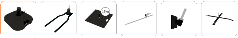 Pour créer ce Beach Flag, je vous propose plusieurs choix d’embases afin de pousser la liberté du choix. Vous pouvez choisir celle qui vous convient lors de la configuration de votre oriflamme avant impression. Je propose un pied 4 branches avec une bouée de lestage, un pied de voiture, un piquet de sol, une embase métallique plate de 8Kg ou de 13,5Kg (au choix) et un pied parasol d’une capacité de 23L. Si vous choisissez un Beach Flag de taille XL, le choix est identique à celui du beach flag L. Grâce à leurs tailles, vous ne pourrez commander qu’une base métallique plate de 13kg, un pied piquet, un pied parasol ou un pied voiture.