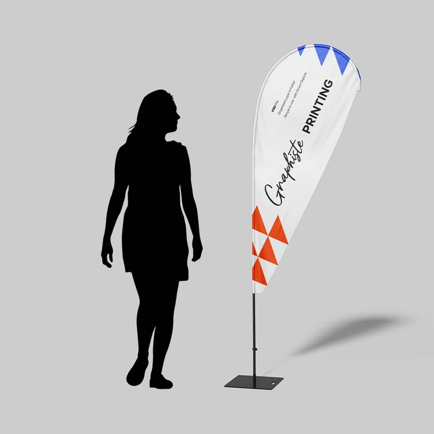 Nous avons vu que les Beach Flags imprimés peuvent être utilisés dans de nombreuses situations et sur tous les terrains. Pour être capable de répondre à la plupart des cas, il vous faut différents modèles. Vous pouvez donc choisir différentes formes ou différents formats pour satisfaire vos clients. Ainsi, deux formes sont possibles, la plume ou la goutte. Dans les deux cas, il y a 4 formats de drapeau disponibles : S, M, L ou XL. Ils correspondent respectivement à 2.15m, 2.55m, 3.25m et 5.10m.