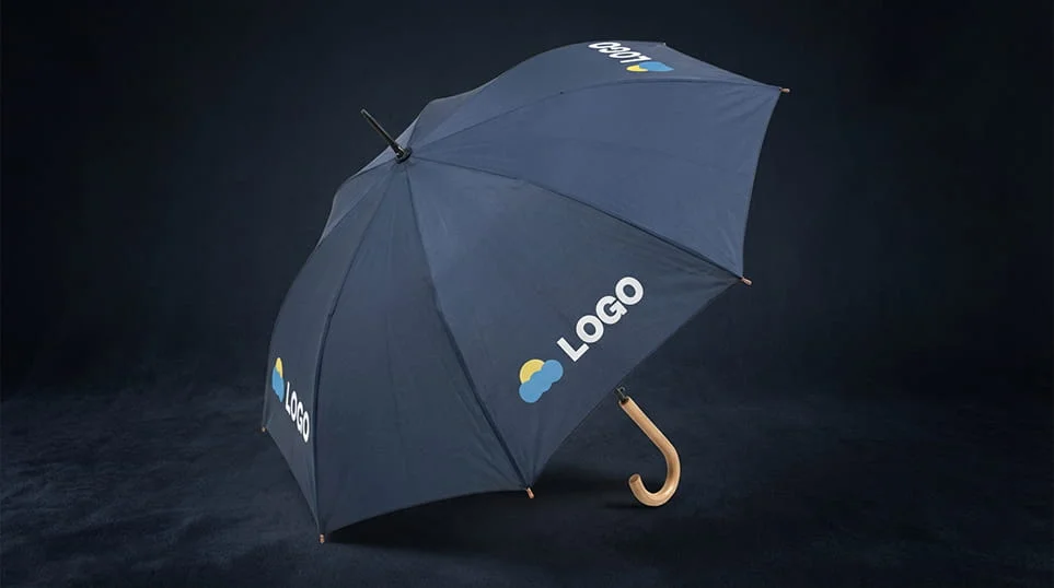 Le modèle Bergen, quant à lui, est fortement apprécié des professionnels pour sa qualité et sa robustesse inégalées. Également pourvu d’un tissu 100 % polyester pongé recyclé et waterSAVE®, ce parapluie automatique intègre une tige en côtes de fibre de verre flexibles, similaire au modèle Glasgow. Il se différencie seulement par sa poignée en bois courbée. Cette caractéristique offre non seulement un certain confort, mais également une grande visibilité à l’entreprise qui l’utilise, grâce à son design élégant.