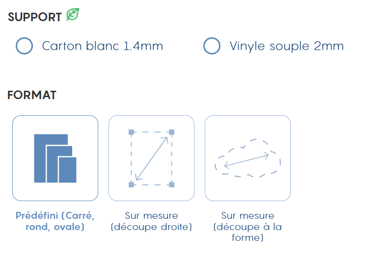 Réponse : Les angles sont automatiquement arrondis si vous choisissez un format sur mesure découpe droite.